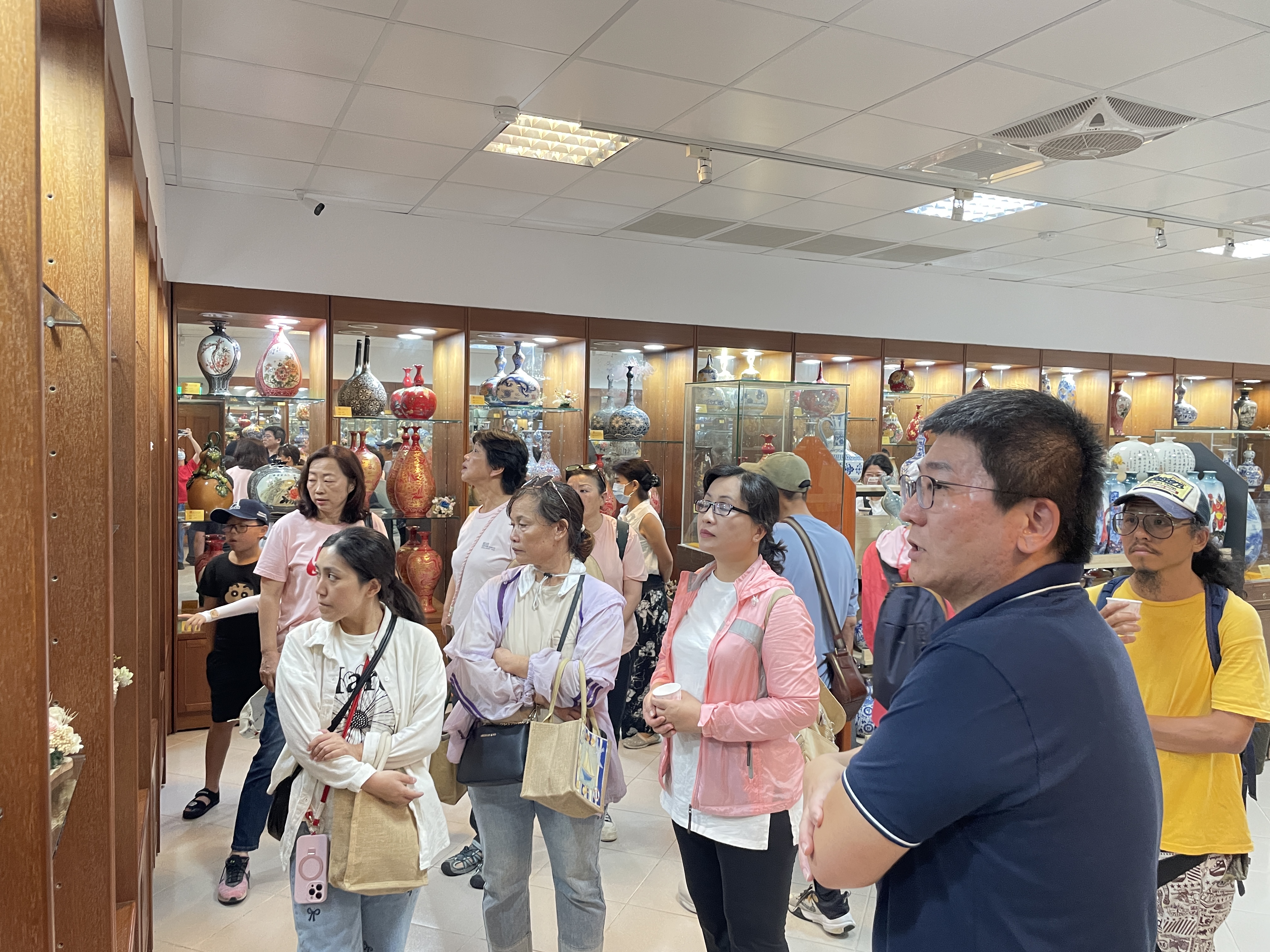 近日陶瓷廠迎來了由金門縣民宿旅遊發展協會理事長韋燕群帶領的團隊蒞臨參觀,貴賓們除了參觀我們的陶瓷博物館深入了解陶瓷廠的歷史與製程特色外,也實際體驗了「壓克力彩繪課程」,不同於釉下彩的細膩工序,壓克力彩繪畫完就能帶回家,讓人留下最即時又溫暖的紀念。